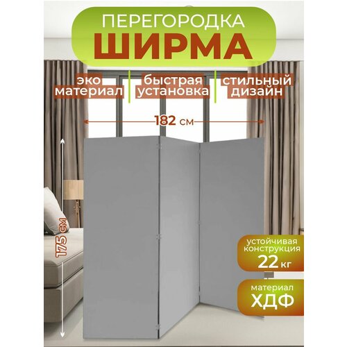Купить Ширма для зонирования комнаты перегородка 3 створки 182х175 см. Серая с доставкой по всей России.