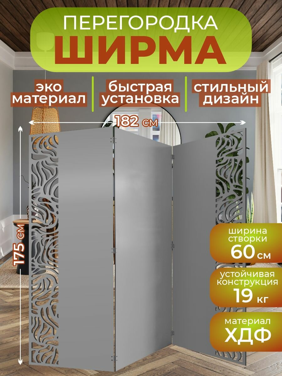 Ширма для зонирования комнаты перегородка 3 створки 182х175 см. Волна серая: сравнение цен, характеристики, фото, актуальное наличие и цены.