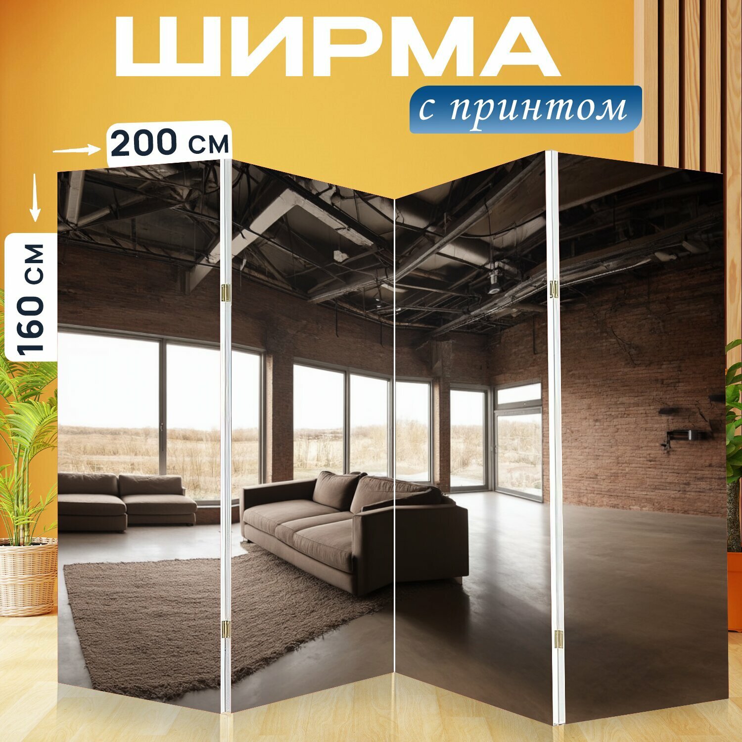 Купить Ширма «Лофт, на которых показан открытый план с большими окнами, которые освещают пространство. мебель в индустриальном» перегородка для зонирования комнаты с принтом 200×160 см. на холсте с доставкой по всей России. Ширма «Лофт, на которых показан открытый план с большими окнами, которые освещают пространство. мебель в индустриальном» перегородка для зонирования комнаты с принтом 200×160 см. на холсте: сравнение цен, характеристики, фото, актуальное наличие и цены.