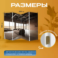 Ширма "Лофт, на которых показан открытый план с большими окнами, которые освещают пространство. мебель в индустриальном" перегородка для зонирования комнаты с принтом 200x160 см. на холсте