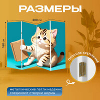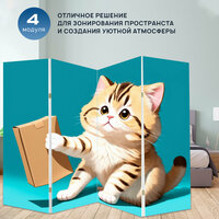 Ширма «Мягкая кошка, играющая с куском пачки, которая случайно взлетела, стиль детской иллюстрации с мягкими» перегородка для зонирования комнаты с принтом 200×160 см. на холсте