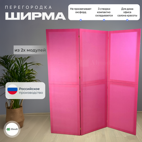 Купить Ширма перегородка для зонирования комнаты розовая 3 створки модульная с доставкой по всей России.