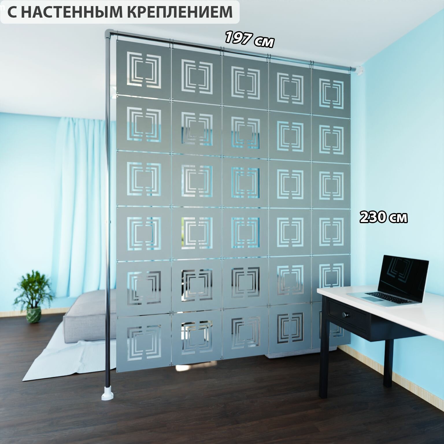Купить Ширма перегородка для зонирования 230*197 Крепление на стену с доставкой по всей России.