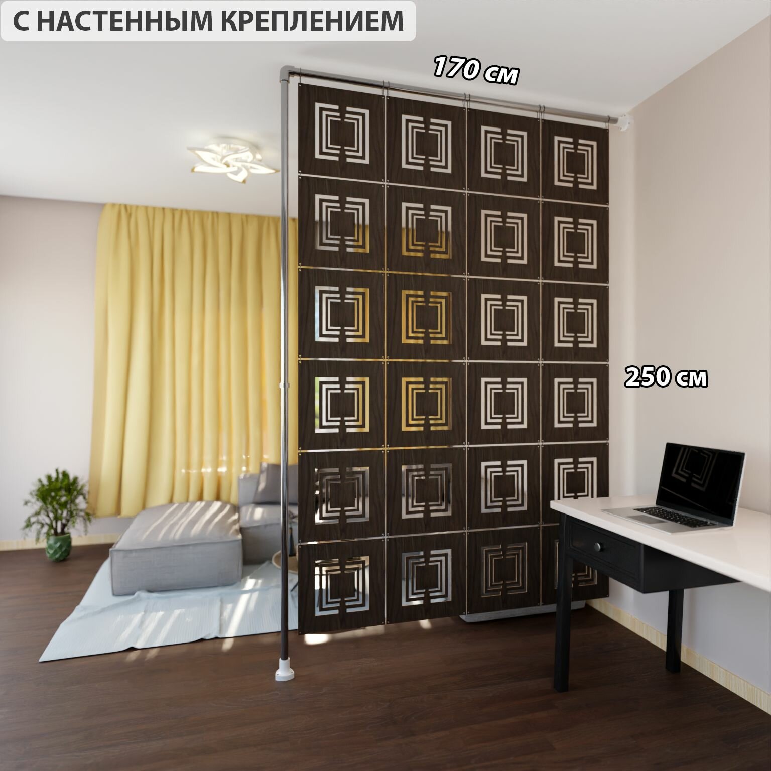Ширма перегородка для зонирования комнаты. Настенное крепление. Высота 250 см ширина 120 см. Комплект 18 квадратов+крепеж. Ширма для комнаты.