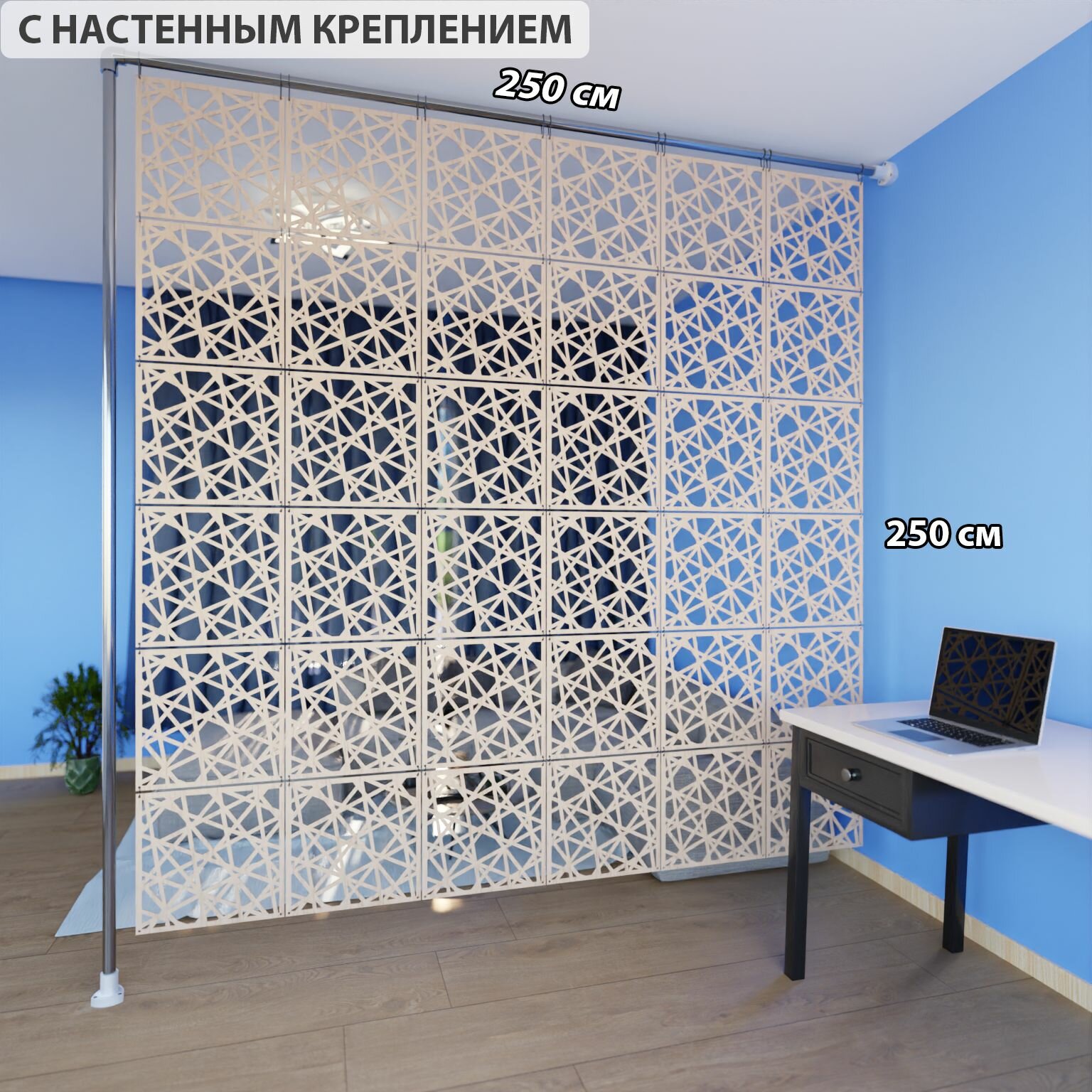 Купить Ширма перегородка для зонирования 250*250 Крепление на стену с доставкой по всей России.