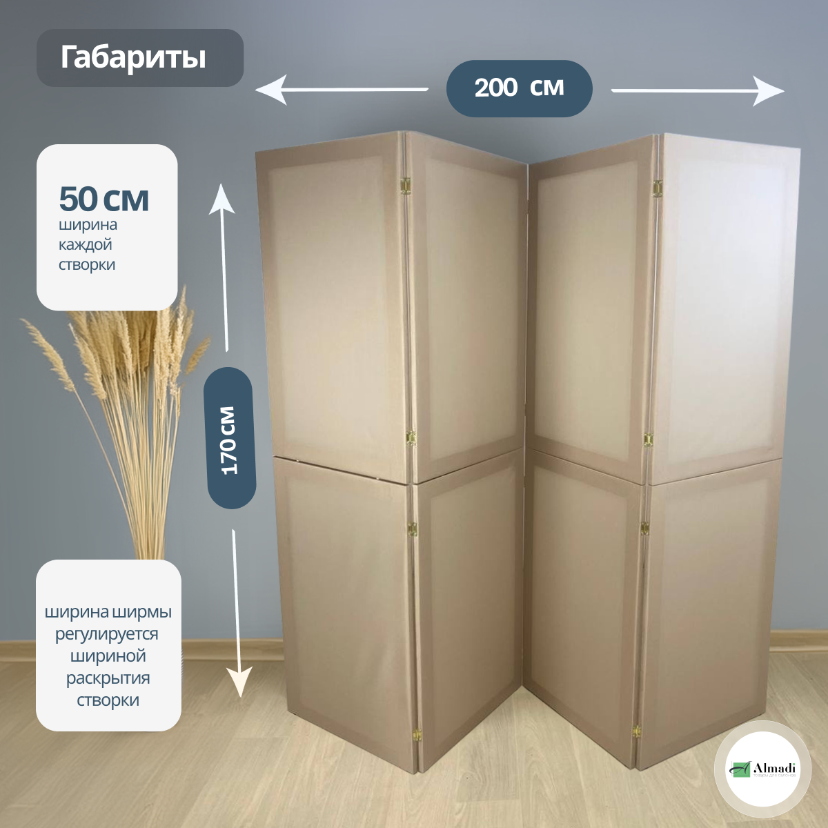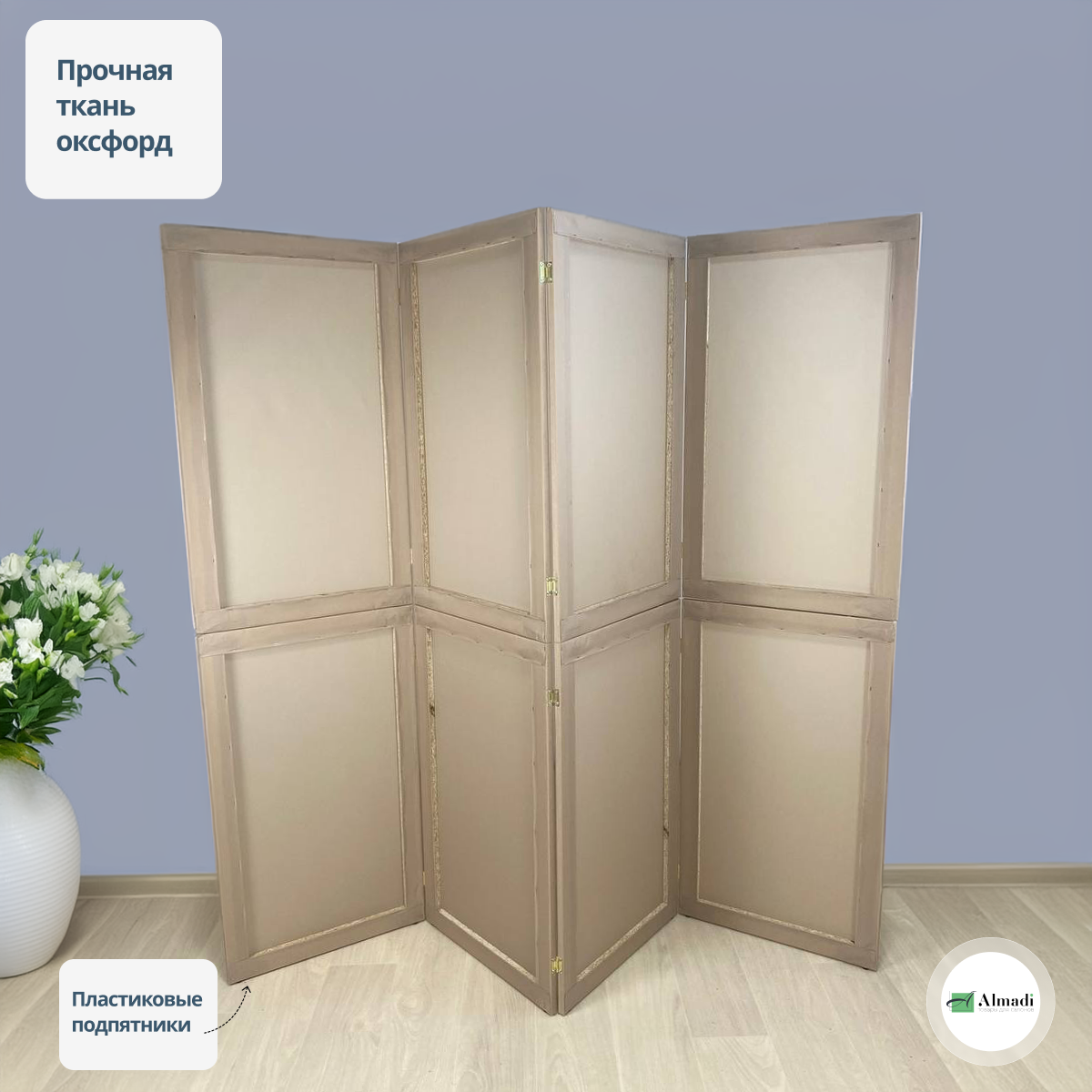 Ширма перегородка для зонирования комнаты бежевая 4 створки модульная: сравнение цен, характеристики, фото, актуальное наличие и цены.