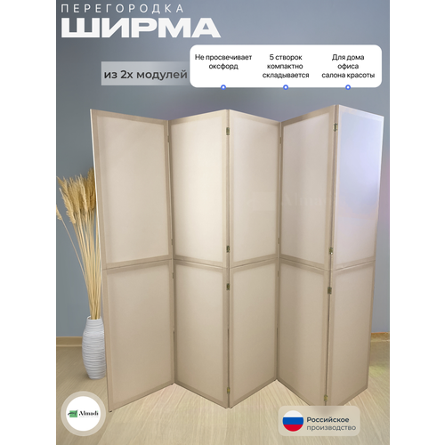 Ширма перегородка для зонирования комнаты бежевая 5 створок модульная: сравнение цен, характеристики, фото, актуальное наличие и цены.