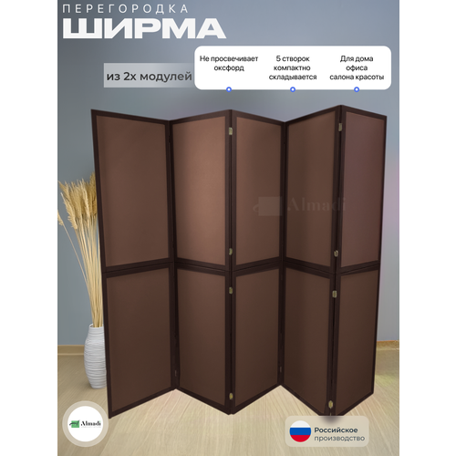Ширма перегородка для зонирования комнаты коричневая 5 створок модульная: сравнение цен, характеристики, фото, актуальное наличие и цены.