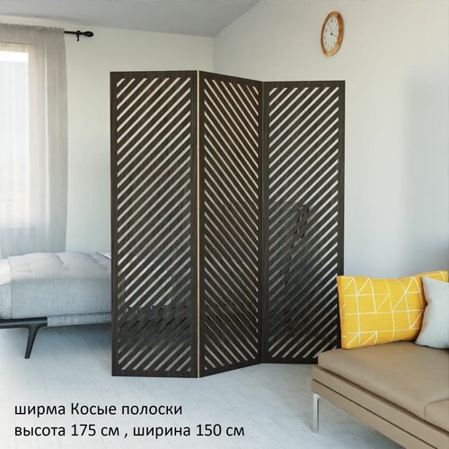 Ширма перегородка для зонирования комнаты. Недорого . Модель Косые полоски. Размер 175см высота *150 см ширина: сравнение цен, характеристики, фото, актуальное наличие и цены.
