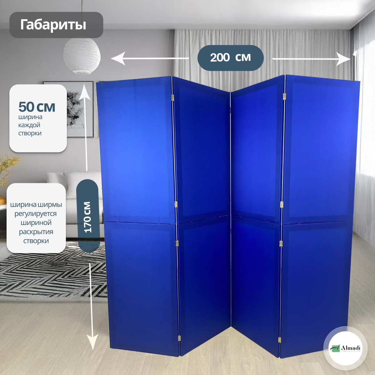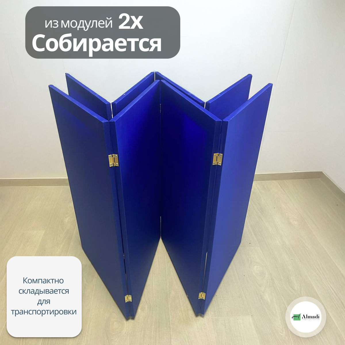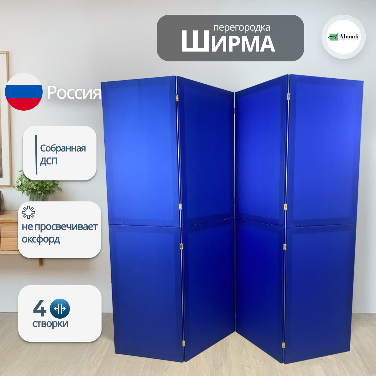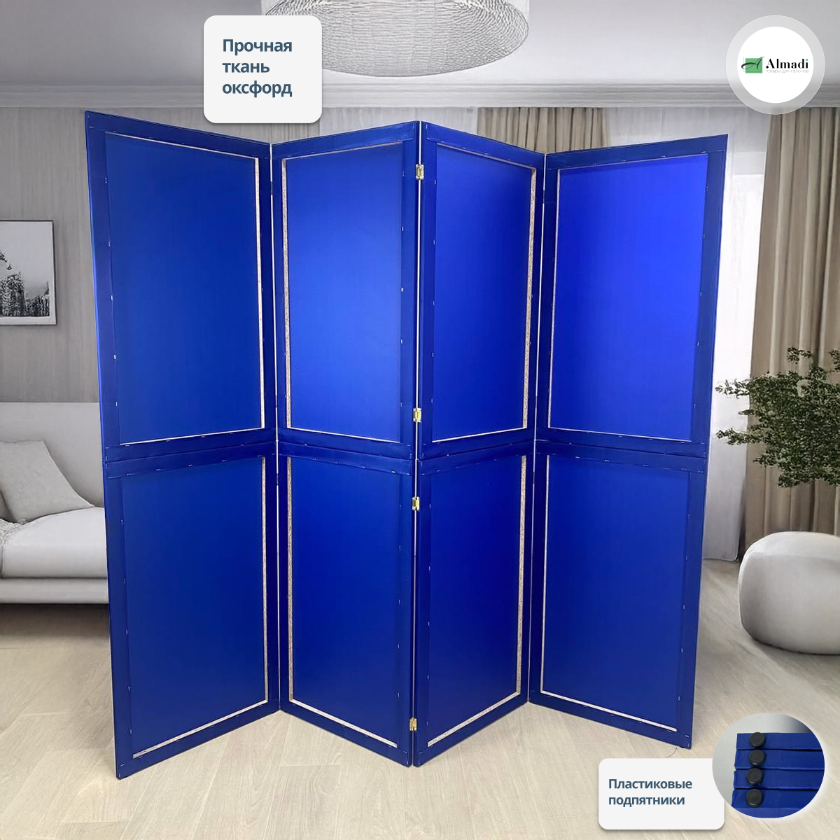 Ширма перегородка для зонирования комнаты синяя 4 створки модульная: сравнение цен, характеристики, фото, актуальное наличие и цены.