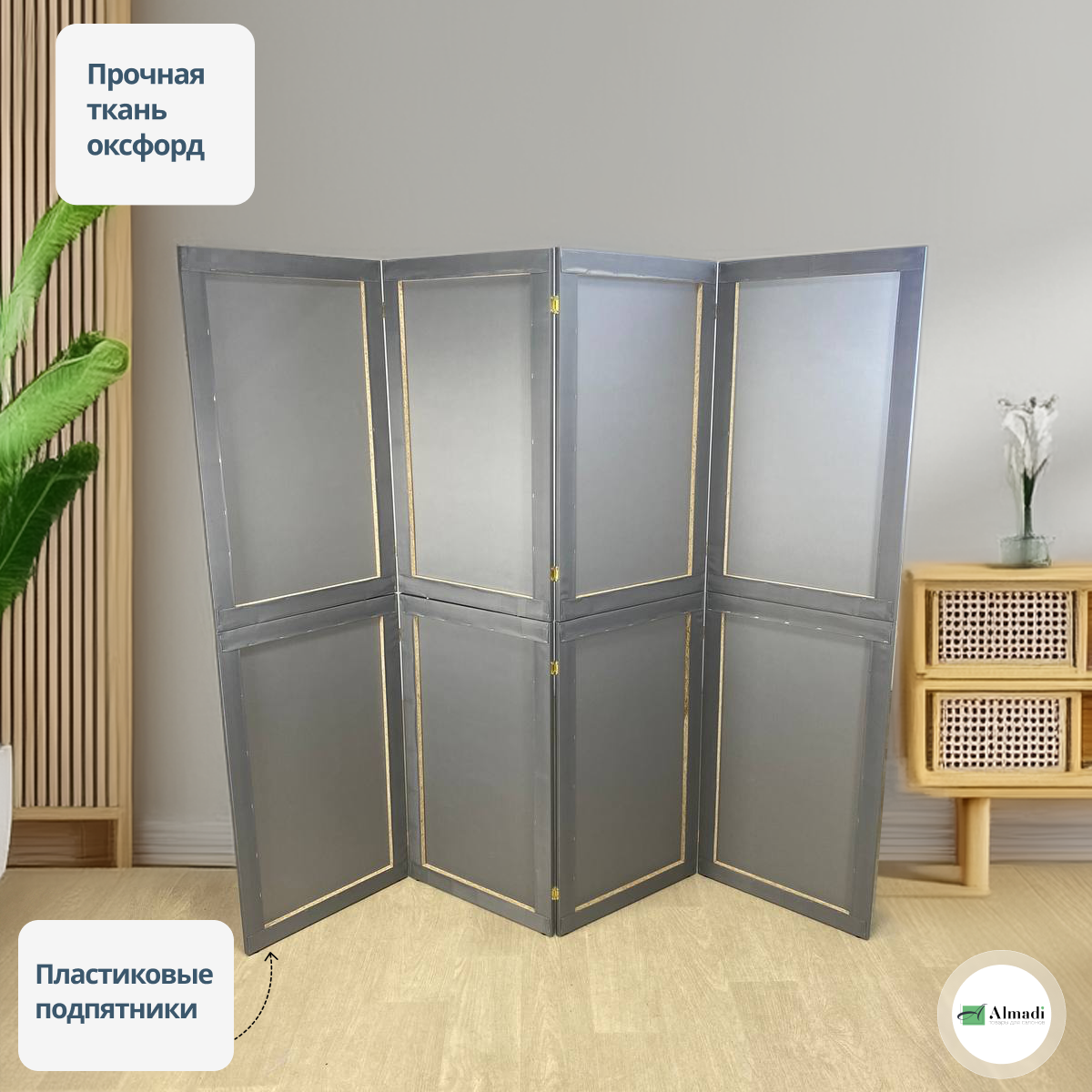 Если вы ищете способ улучшить функциональность и эстетику вашего дома или рабочего пространства, обратите внимание на нашу Ширму перегородку для зонирования складную серую 4 створки модульную. Это универсальное решение для создания уюта и комфорта в любом помещении.