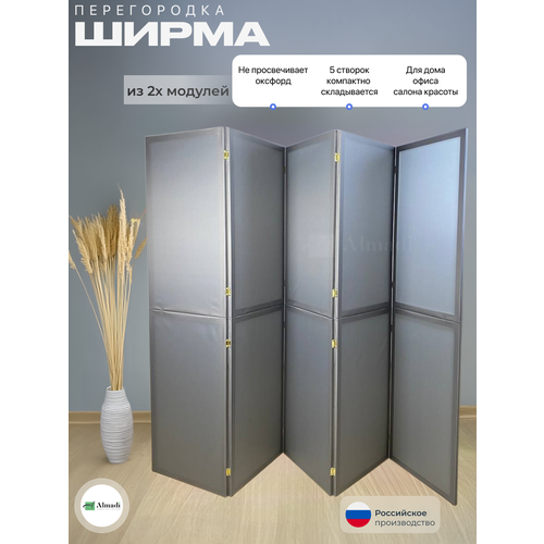 Ширма перегородка для зонирования комнаты светло-серая 5 створок модульная: сравнение цен, характеристики, фото, актуальное наличие и цены.