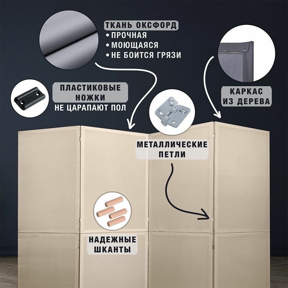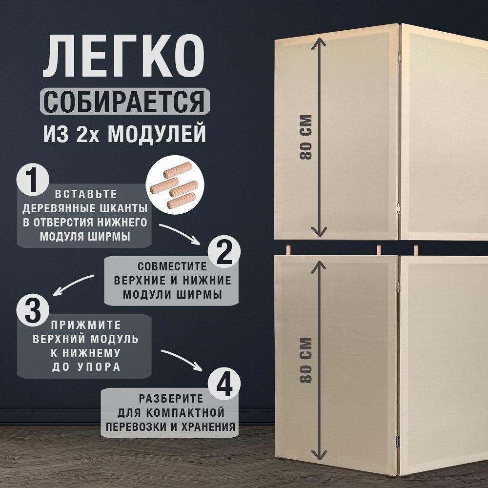 Ширма перегородка секционная раскладная для зонирования. Рама из натурального дерева. 1 створка.: сравнение цен, характеристики, фото, актуальное наличие и цены.