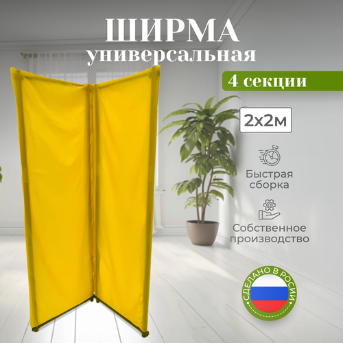 Ширма универсальная желтая – это универсальное решение для создания удобного и функционального пространства в интерьере. Широко применяется как в домашнем, так и в коммерческом использовании. Она может служить не только декоративным элементом, но и функциональным разделителем помещения, создавая ощущение уюта, комфорта и интимности. Конструкция ширмы легко собирается, разбирается и соединяется между собой, прочная конструкция из армированного пластика. Детали не более 1м в длину. Полотно крепится с помощью декоративных булавок. Ширма перегородка для зонирования комнаты выполнена из качественных материалов и имеет разные конструктивные решения. Наш магазин поставляет различные виды и цвета. Одним из ключевых преимуществ ширмы складной тканевой является ее мобильность. Ширма складная пластиковая - это декоративная стена, которая может использоваться как ширма для ванной и для разделения пространства в гостиной, в спальне, и в любом другом уголке дома, так и в медицинских и других общественных учреждениях. Может использоваться как ширма для кукольного театра в детском саду, так же и мебель для салона красоты или студии. А так же она очень удобна для разделения в детской, что очень важно для детей. Данное качество делает ширму универсальной и функциональной в использовании. Благодаря легкости в установке и перемещении, ширма может легко изменять конфигурацию помещения, давая возможность создавать новые интерьерные композиции, украсить комнату и обеспечить гибкость в использовании пространства. Она помогает разделить большое пространство на уютные уголки, создавая уединенные зоны для отдыха, работы или общения. Благодаря широкому выбору дизайнов и размеров, ширма может быть адаптирована под любые потребности и пожелания заказчика. Таким образом, ширма напольная – это не только практичное и функциональное решение для разделения пространства, но и стильный декоративный элемент межкомнатная перегородка, которая способна преобразить интерьер и придать ему индивидуальность. Благодаря своей универсальности и гибкости в использовании, ширма открытого типа становится незаменимым аксессуаром для создания комфортной и гармоничной обстановки в любом помещении. Устойчива к агрессивной среде. Ткань повышенной плотности, легко снимается и стирается при необходимости.