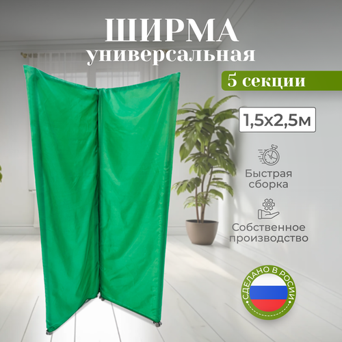 Ширма универсальная зелёная – это универсальное решение для создания удобного и функционального пространства в интерьере. Широко применяется как в домашнем, так и в коммерческом использовании. Она может служить не только декоративным элементом, но и функциональным разделителем помещения, создавая ощущение уюта, комфорта и интимности. Конструкция ширмы легко собирается, разбирается и соединяется между собой, прочная конструкция из армированного пластика. Детали не более 1м в длину. Полотно крепится с помощью декоративных булавок. Ширма перегородка для зонирования комнаты выполнена из качественных материалов и имеет разные конструктивные решения. Наш магазин поставляет различные виды и цвета. Одним из ключевых преимуществ ширмы складной тканевой является ее мобильность. Ширма складная пластиковая - это декоративная стена, которая может использоваться как ширма для ванной и для разделения пространства в гостиной, в спальне, и в любом другом уголке дома, так и в медицинских и других общественных учреждениях. Может использоваться как ширма для кукольного театра в детском саду, так же и мебель для салона красоты или студии. А так же она очень удобна для разделения в детской, что очень важно для детей. Данное качество делает ширму универсальной и функциональной в использовании. Благодаря легкости в установке и перемещении, ширма может легко изменять конфигурацию помещения, давая возможность создавать новые интерьерные композиции, украсить комнату и обеспечить гибкость в использовании пространства. Она помогает разделить большое пространство на уютные уголки, создавая уединенные зоны для отдыха, работы или общения. Благодаря широкому выбору дизайнов и размеров, ширма может быть адаптирована под любые потребности и пожелания заказчика. Таким образом, ширма напольная – это не только практичное и функциональное решение для разделения пространства, но и стильный декоративный элемент межкомнатная перегородка, которая способна преобразить интерьер и придать ему индивидуальность. Благодаря своей универсальности и гибкости в использовании, ширма открытого типа становится незаменимым аксессуаром для создания комфортной и гармоничной обстановки в любом помещении. Устойчива к агрессивной среде. Ткань повышенной плотности, легко снимается и стирается при необходимости.