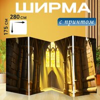 Купить Ширма «Сказочный замок с желтыми витражами, пронизывающими яркими лучами света в длинный коридор, создавая игру» перегородка для зонирования комнаты с принтом 280×175 см. на холсте с доставкой по всей России. Ширма «Сказочный замок с желтыми витражами, пронизывающими яркими лучами света в длинный коридор, создавая игру» перегородка для зонирования комнаты с принтом 280×175 см. на холсте: сравнение цен, характеристики, фото, актуальное наличие и цены.