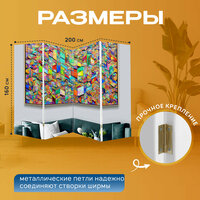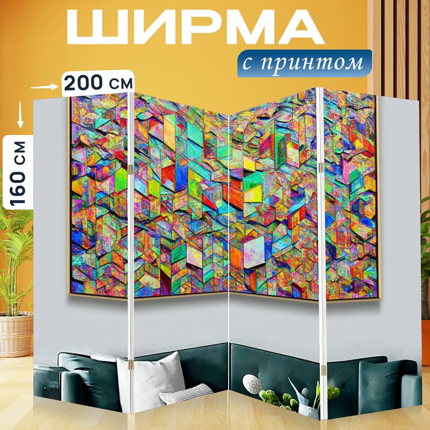 Ширма в зал, в гостинную "Арт-объект с многоцветными геометрическими формами, выполненный в технике коллажа. эта" перегородка для зонирования комнаты с принтом 200x160 см. на холсте