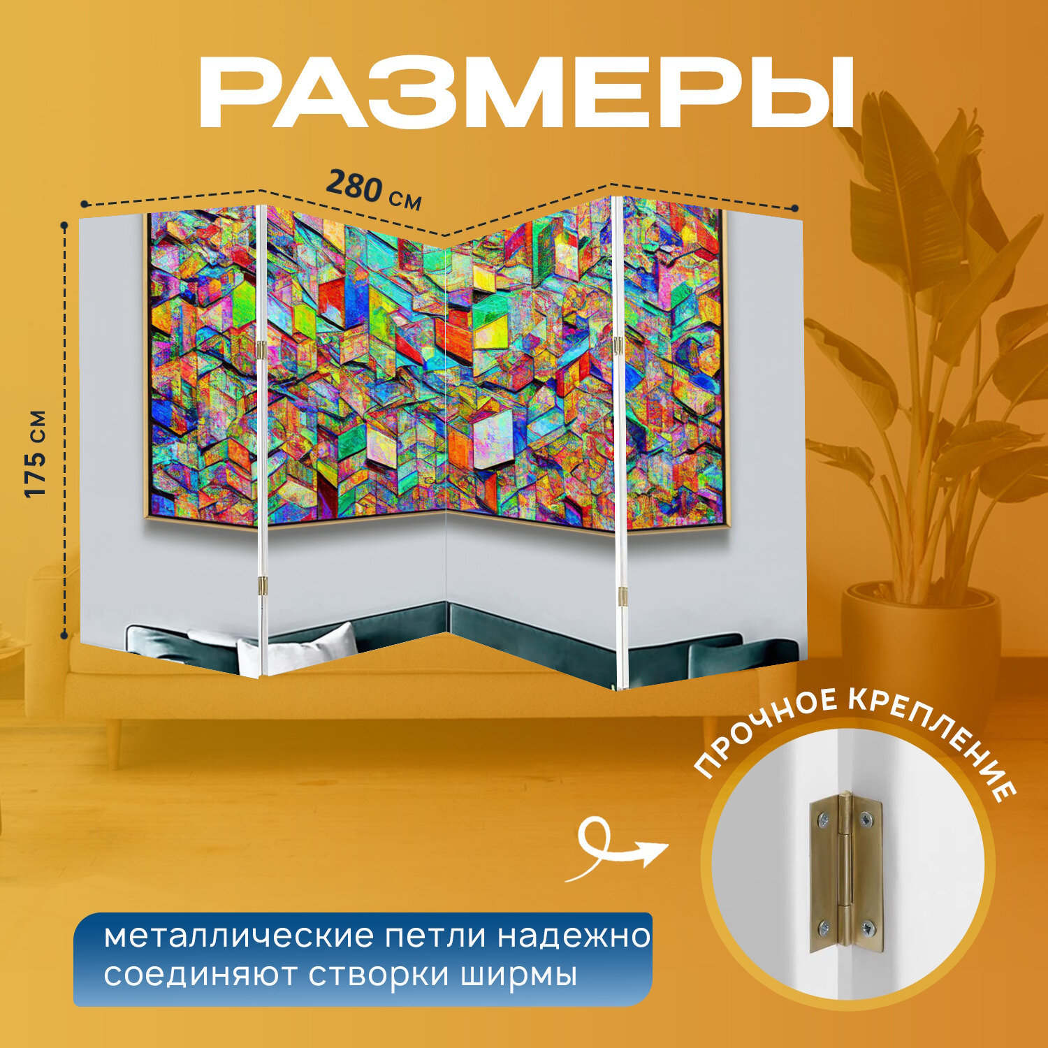 Купить Ширма в зал, в гостинную «Арт-объект с многоцветными геометрическими формами, выполненный в технике коллажа. эта» перегородка для зонирования комнаты с принтом 280×175 см. на холсте с доставкой по всей России. Ширма в зал, в гостинную «Арт-объект с многоцветными геометрическими формами, выполненный в технике коллажа. эта» перегородка для зонирования комнаты с принтом 280×175 см. на холсте: сравнение цен, характеристики, фото, актуальное наличие и цены.