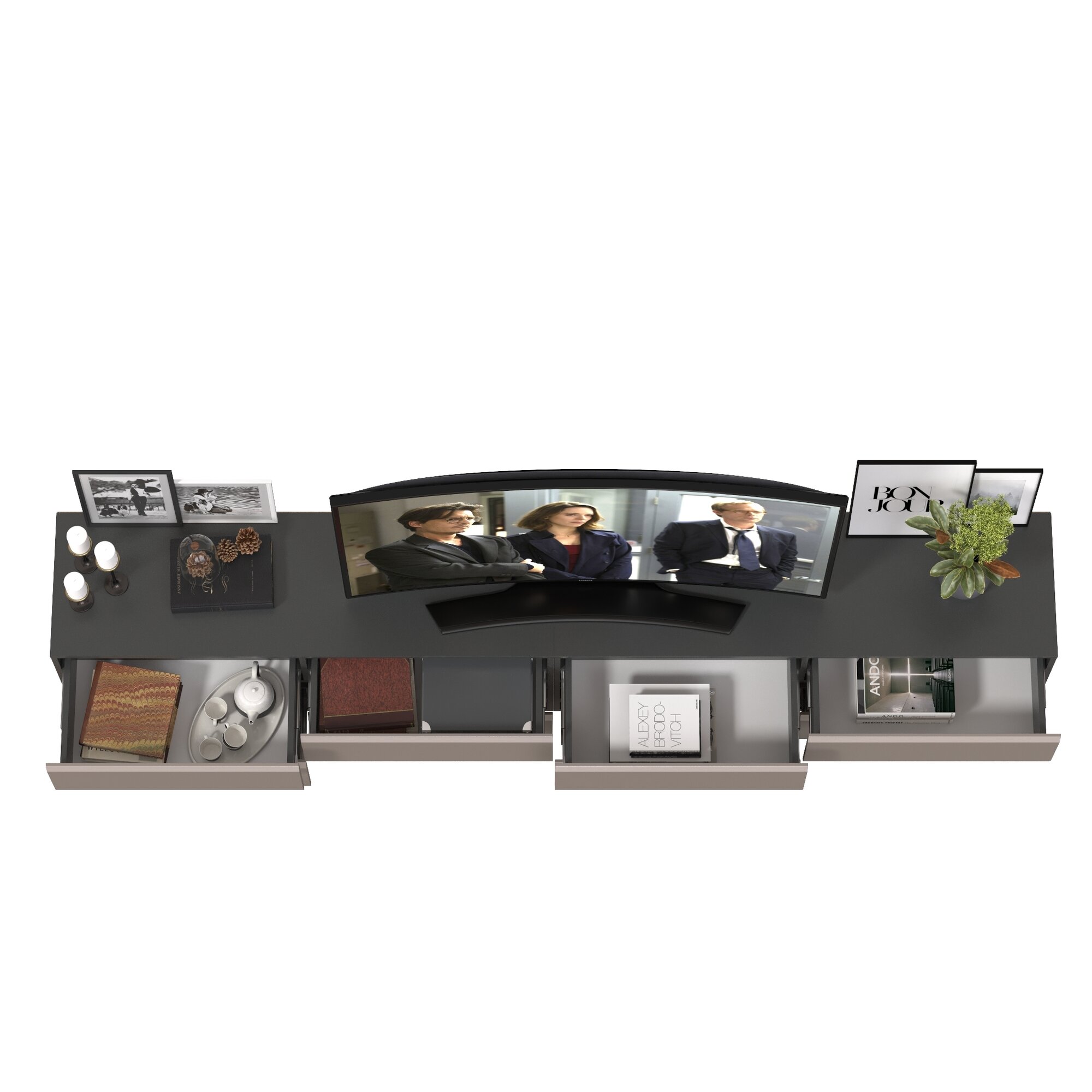 Широкая тумба для аппаратуры Сидней, цвет антрацит/МДФ веллюто капучино, 259,8х41,3х52,4 см.: сравнение цен, характеристики, фото, актуальное наличие и цены.
