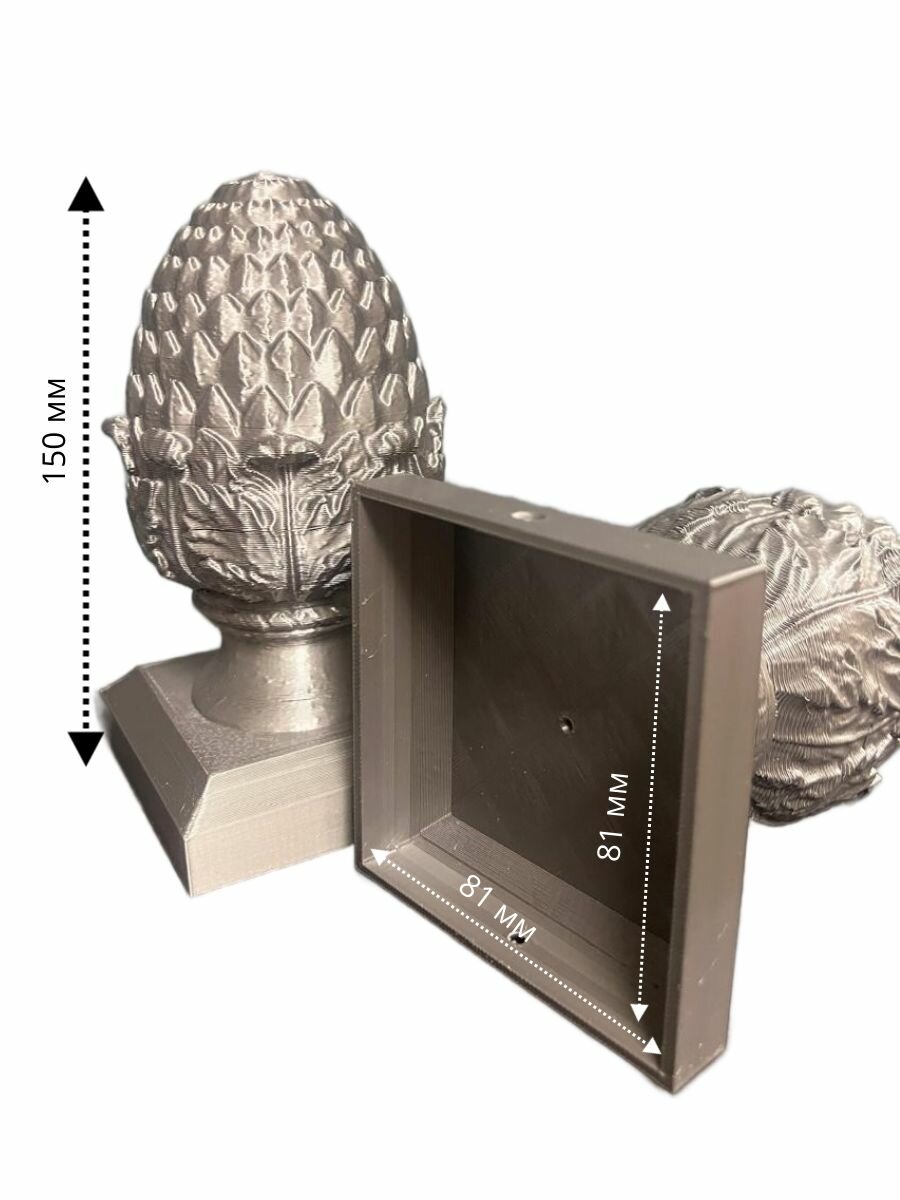 Шишка топер - это оригинальная верхушка, которая придаст вашему забору или воротам изысканный и завершенный вид. Комплект включает два элемента, каждый из которых идеально подходит для столбов размером верха 80х80 мм. Декор столбов заборов, лестниц и перил с использованием этой заглушки столба станет не только практичным решением, но и стильным акцентом на вашем участке.