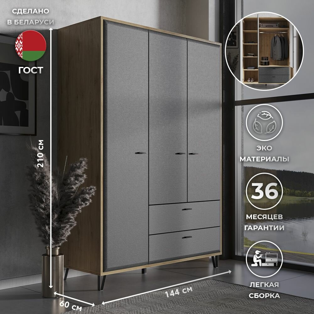 Шкаф 3дв. 144х60х210см GRACE SZF3D2S (Дуб наварра/Графит), 5уп.: сравнение цен, характеристики, фото, актуальное наличие и цены.