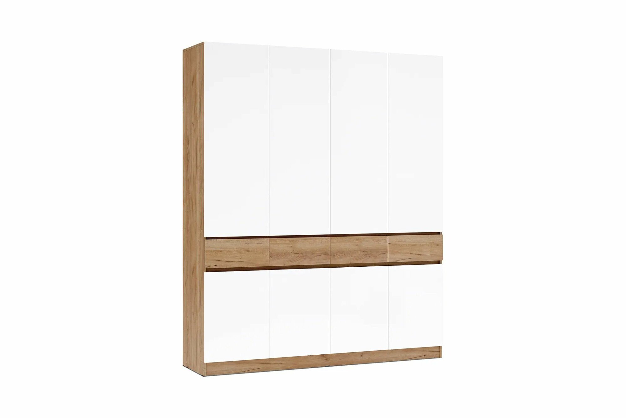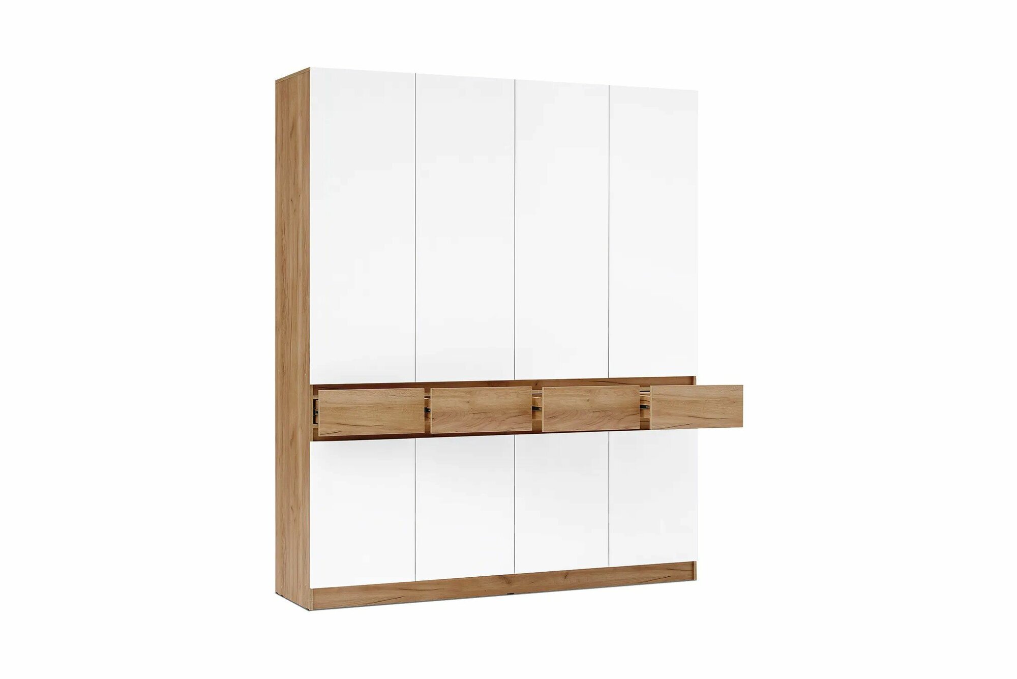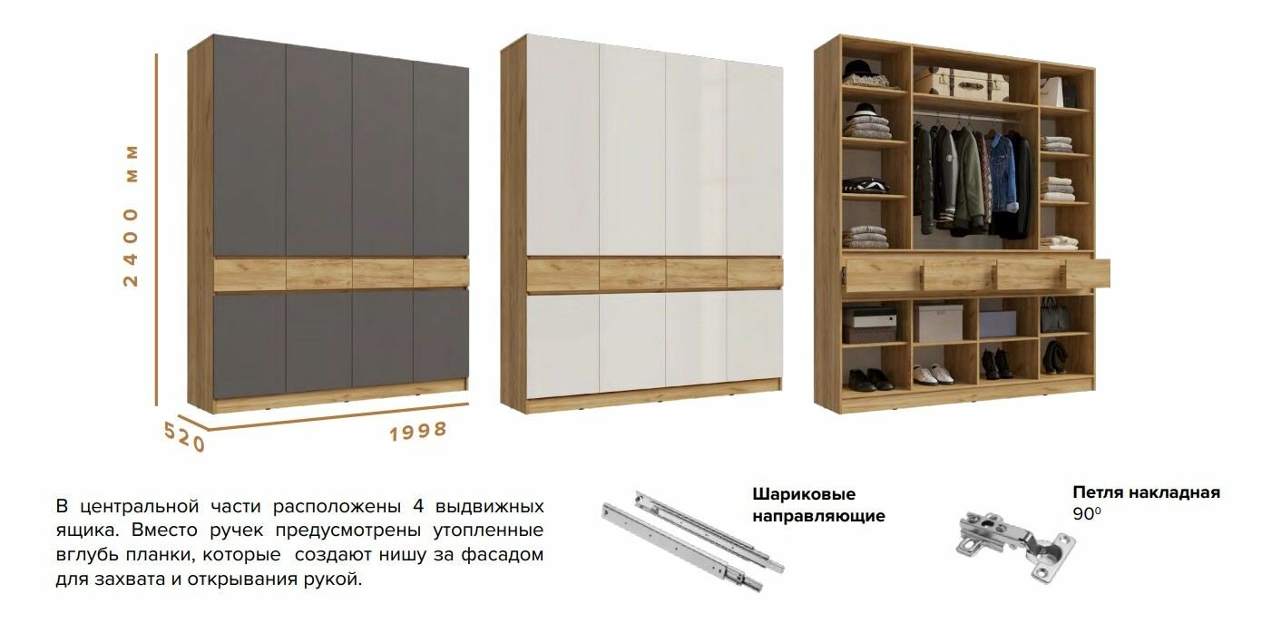 Шкаф 4-х ств. комбинированный с выдвижными ящиками «Роджина» (Дуб Крафт/Белый Глянец): сравнение цен, характеристики, фото, актуальное наличие и цены.
