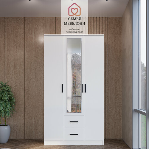 Шкаф «Фьюжн» из дерева предлагает универсальное решение для организации одежды в любой комнате. Распашная конструкция с зеркалом подходит как для прихожей, так и для спальни или гостиной. Высокий, трехстворчатый платяной шифоньер позволит аккуратно разместить вещи благодаря продуманной системе хранения.