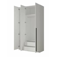 Внутри шкафа вы найдете полки и штангу для размещения вашей одежды. С встроенной тумбой и выдвижными ящиками, этот шкаф предлагает удобное хранение белья, аксессуаров и мелочей.