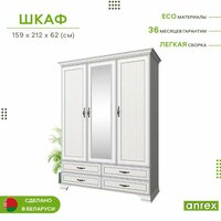 Производитель из Белоруссии Anrex оснастил ящики направляющими полного выдвижения. Они создают плавный, бесшумный ход и равномерно распределяют нагрузку. Трехстворчатый шкаф 3D4SZ подойдет для хранения разного типа вещей: белья, длинной сезонной одежды, головных уборов и аксессуаров. Он отлично выполняет свою функцию в спальне, прихожей и детской комнате. Несмотря на классическое оформление, такая мебель идеально впишется в современные интерьеры.
