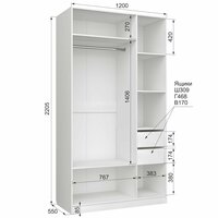 Шкаф отличается высоким качеством исполнения. Он оснащен продуманной системой полок, которые позволяют удобно разложить одежду и другие необходимые вещи. Наличие напольной конструкции обеспечивает устойчивость шкафа и легкость в установке.
