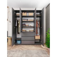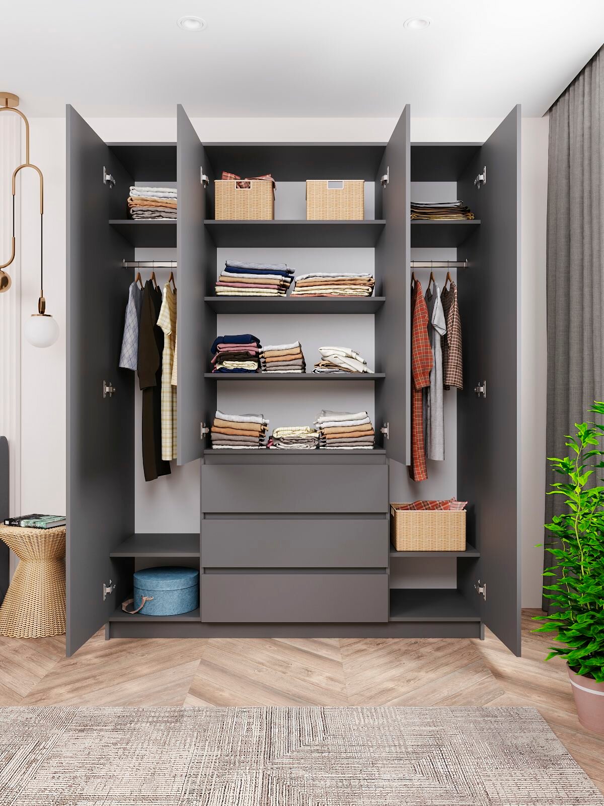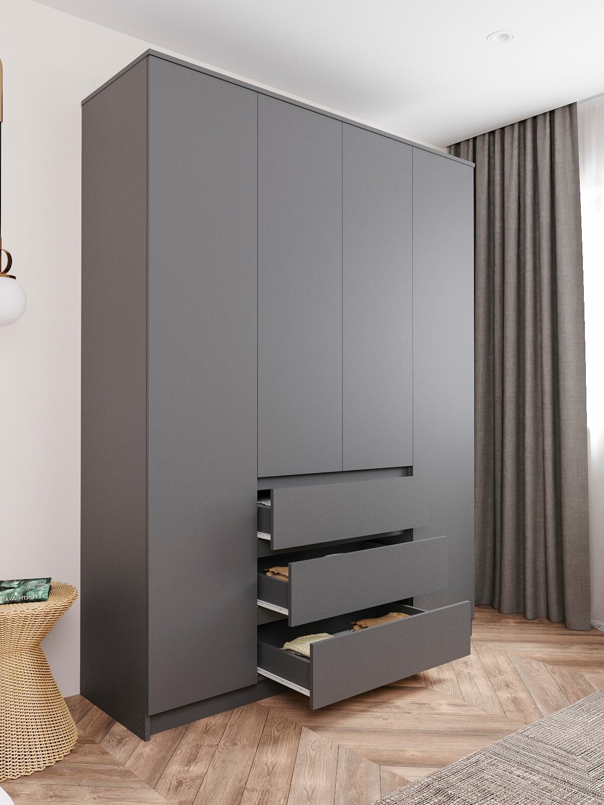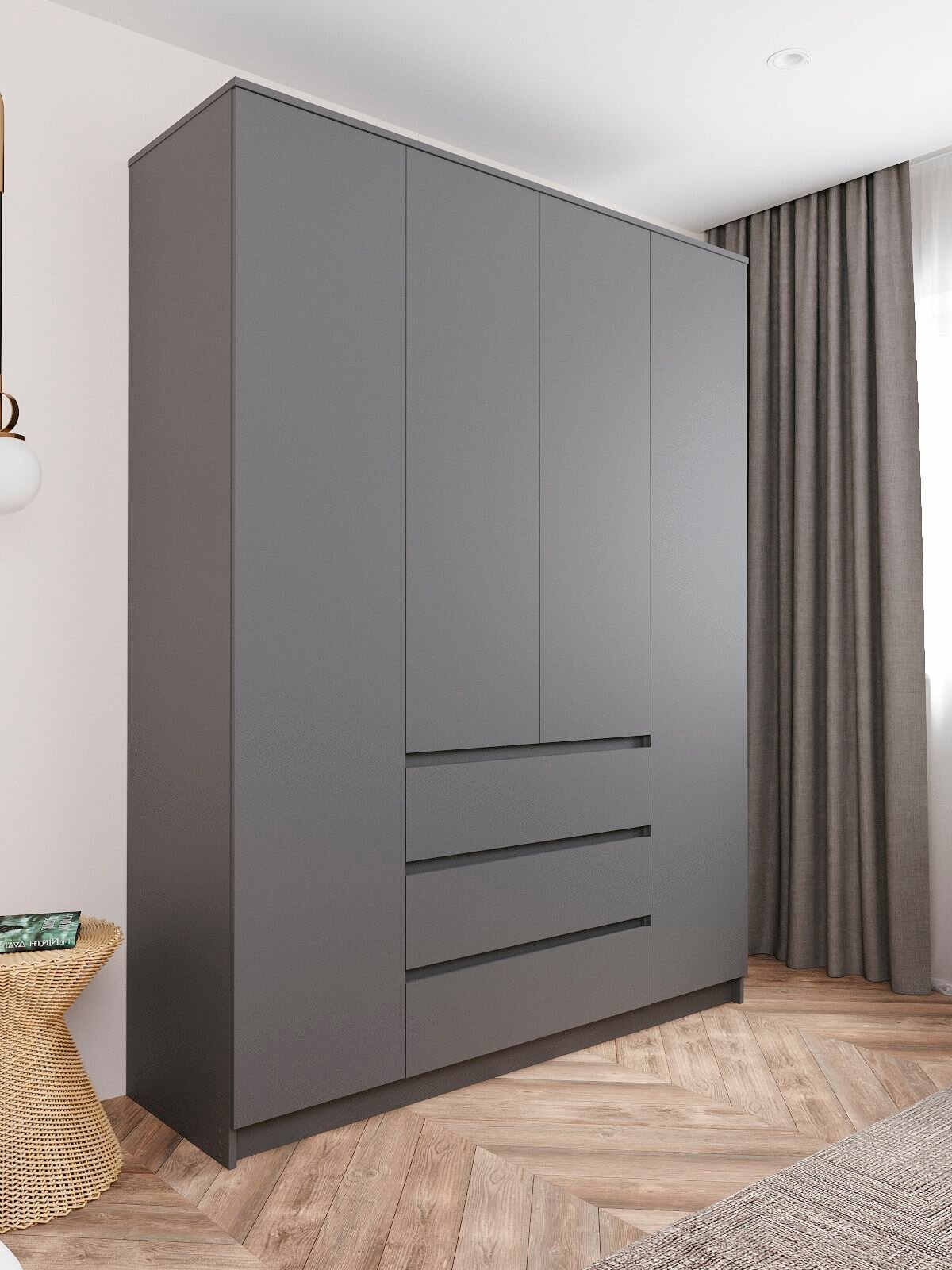Купить Шкаф для одежды четырехстворчатый распашной с ящиками 160 см, Графит с доставкой по всей России. Шкаф для одежды четырехстворчатый распашной с ящиками 160 см, Графит: сравнение цен, характеристики, фото, актуальное наличие и цены.