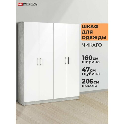 Купить Шкаф для одежды Чикаго четырехдверный 160*47*205 Мебель для спальни Ателье светлый, белый с доставкой по всей России. Шкаф для одежды Чикаго четырехдверный 160*47*205 Мебель для спальни Ателье светлый, белый: сравнение цен, характеристики, фото, актуальное наличие и цены.