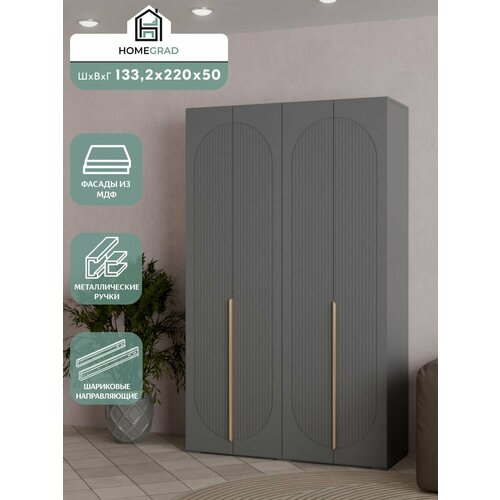 Шкаф Fiesta 133 см в цвете графит с фасадами из МДФ и корпусом из прочного ЛДСП – идеальное решение для организации хранения в спальне или прихожей. Этот вместительный распашной шкаф с габаритами 133,2х220×50 см предлагает оптимальное сочетание элегантного дизайна и практичной функциональности.