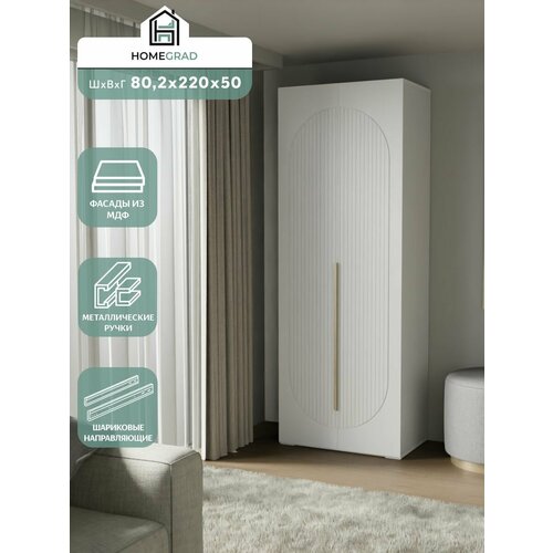 Глубина 50 см оптимальна для размещения плечиков с одеждой, а высота 220 см делает этот гардероб заметным элементом интерьера.