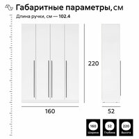 Этот предмет мебели имеет ширину 160 см и высоту 220 см, что позволяет разместить его даже в небольших помещениях. При этом глубина составляет 52 см, это обеспечивает достаточное пространство для хранения вещей.