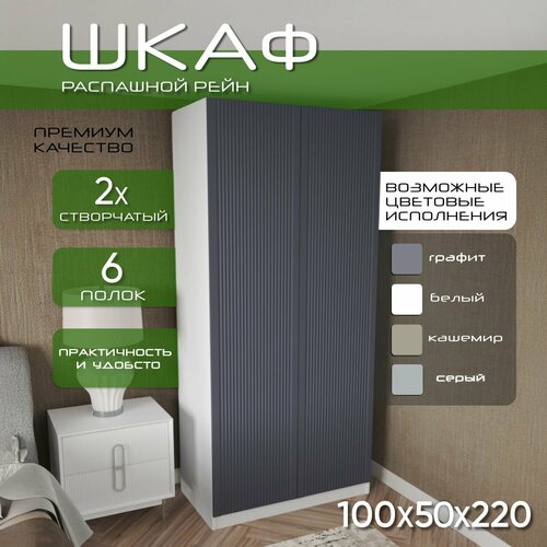 Шкаф для одежды распашной 100х50х220 Рейн, 6 полок, белый/ мдф soft touch графит: сравнение цен, характеристики, фото, актуальное наличие и цены.