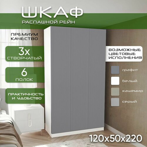 Шкаф для одежды распашной 120х50х220 Рейн, белый/мдф soft touch графит, 3х створчатый: сравнение цен, характеристики, фото, актуальное наличие и цены.