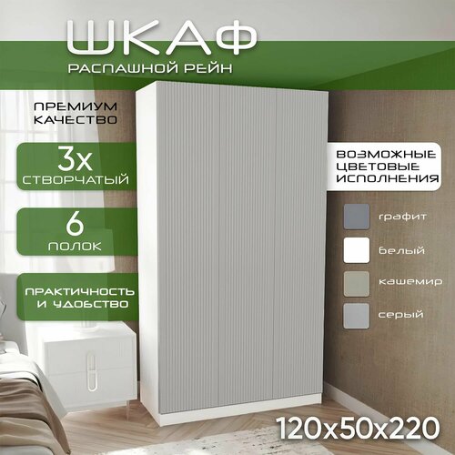Шкаф для одежды распашной 120х50х220 Рейн, белый/мдф soft touch серый, 3х створчатый: сравнение цен, характеристики, фото, актуальное наличие и цены.