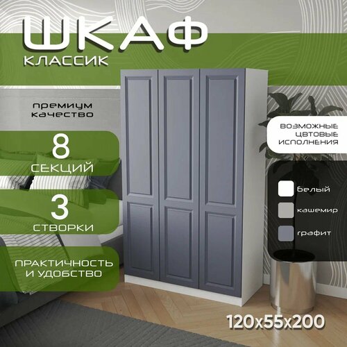 Элегантный и функциональный шкаф для одежды распашной Классик станет отличным решением для хранения ваших вещей. Размеры 120х55х200 см позволяют удобно разместить его в спальне, прихожей или другом помещении, где требуется организовать пространство. Шкаф выполнен в современном дизайне с матовой отделкой белого и графитового цвета, что придаёт ему стильный вид, подходящий для любого интерьера.