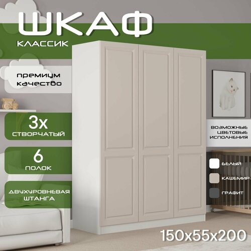 Шкаф для одежды распашной 150х55х200 Классик, белый/ мдф кашемир soft touch матовый, 3х створчатый: сравнение цен, характеристики, фото, актуальное наличие и цены.