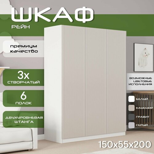 Шкаф для одежды распашной 150х55х200 Рейн, белый/ мдф кашемир soft touch матовый, 3х створчатый: сравнение цен, характеристики, фото, актуальное наличие и цены.