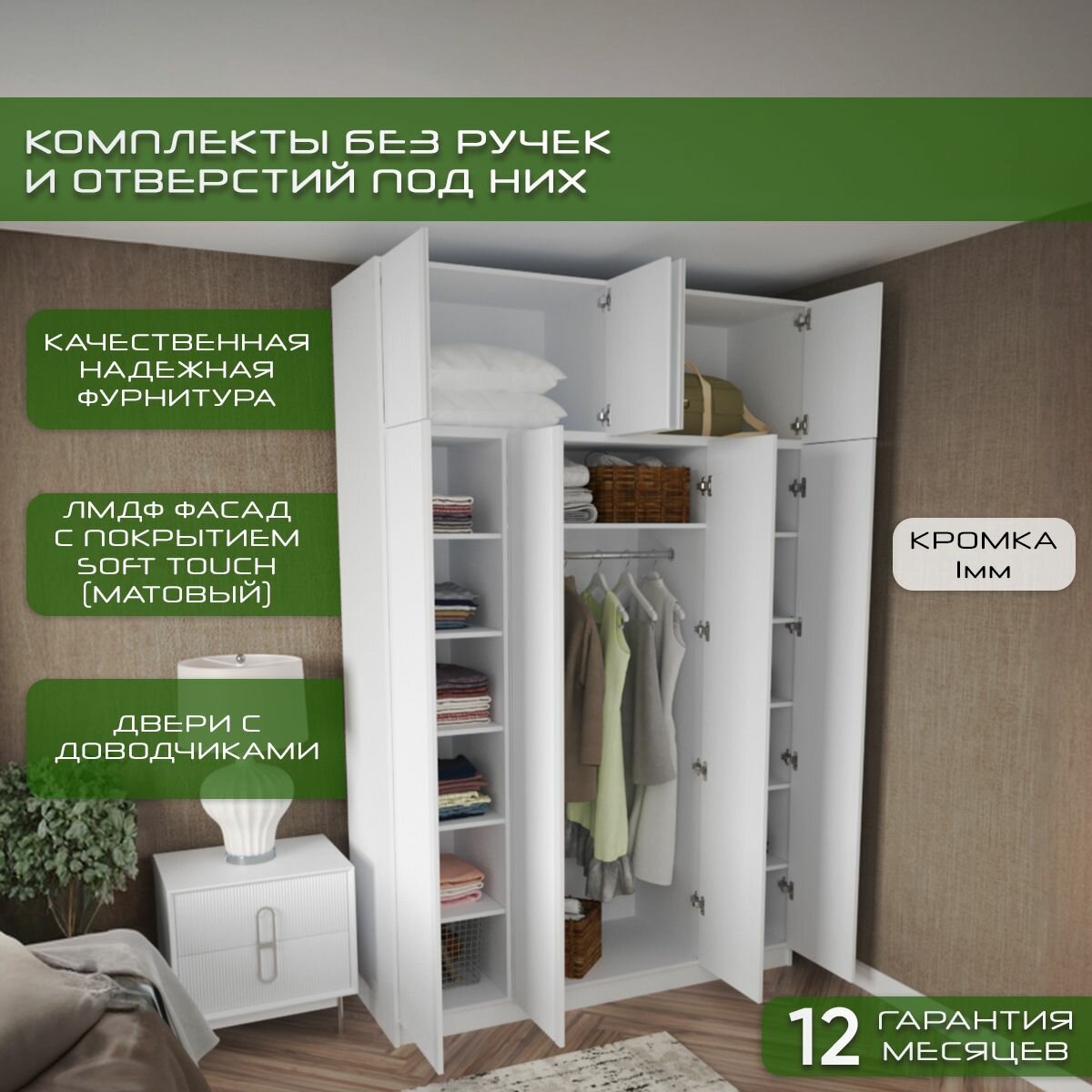 Шкаф для одежды распашной 160х50х250 Рейн, белый/ мдф белый soft touch матовый, 4х створчатый: сравнение цен, характеристики, фото, актуальное наличие и цены.