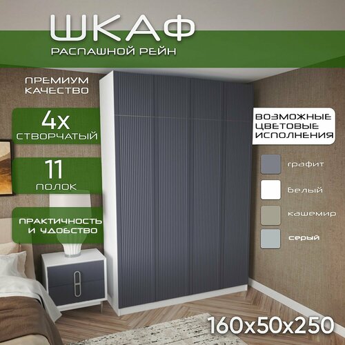 Шкаф для одежды распашной 160х50х250 Рейн, белый/ мдф графит soft touch матовый, 4х створчатый: сравнение цен, характеристики, фото, актуальное наличие и цены.