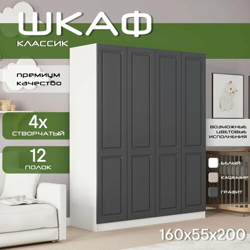 Шкаф для одежды распашной 160х55х200 Классик, белый/ мдф графит soft touch матовый, 4х створчатый: сравнение цен, характеристики, фото, актуальное наличие и цены.