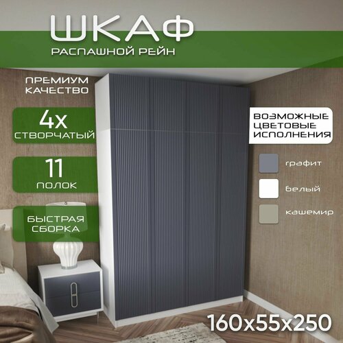 Шкаф для одежды распашной 160х55х250 Рейн, белый/ мдф графит soft touch матовый, 4х створчатый: сравнение цен, характеристики, фото, актуальное наличие и цены.