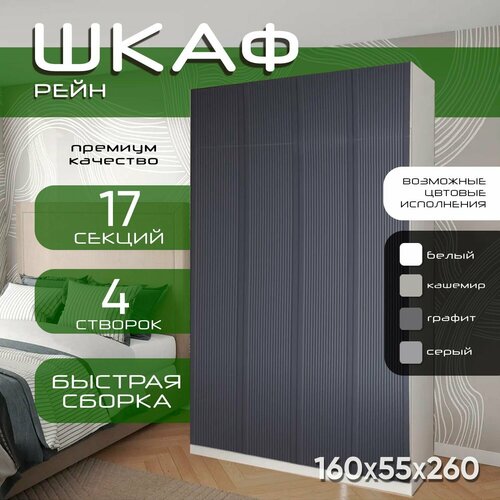 Шкаф для одежды распашной 160х55х260 Рейн, белый/ мдф графит soft touch матовый, 4х створчатый: сравнение цен, характеристики, фото, актуальное наличие и цены.