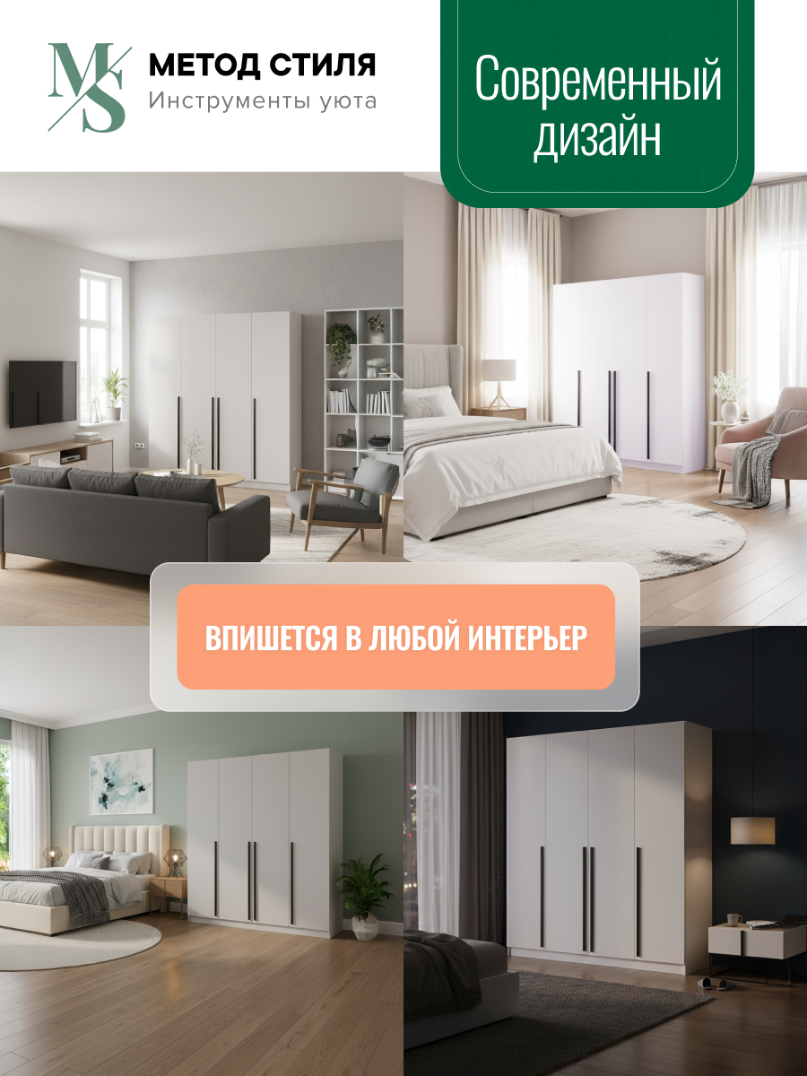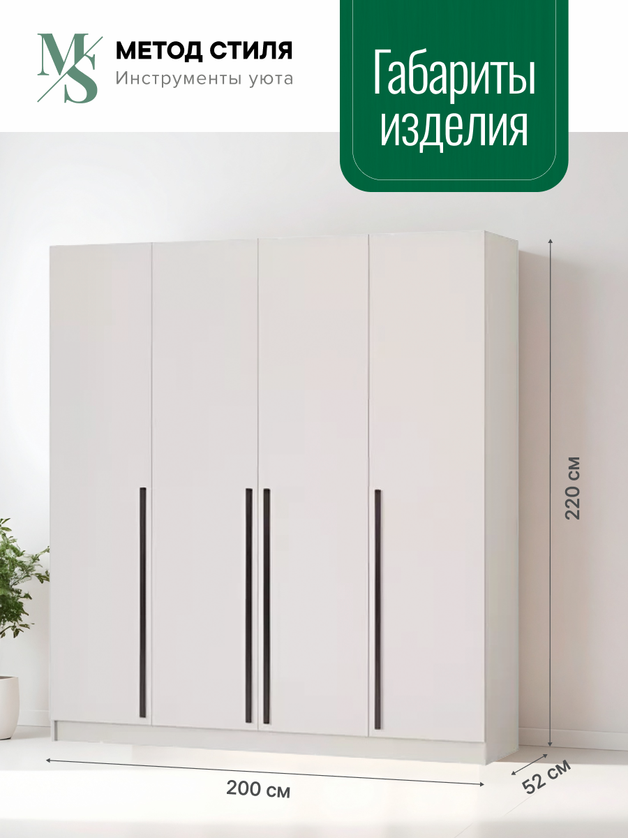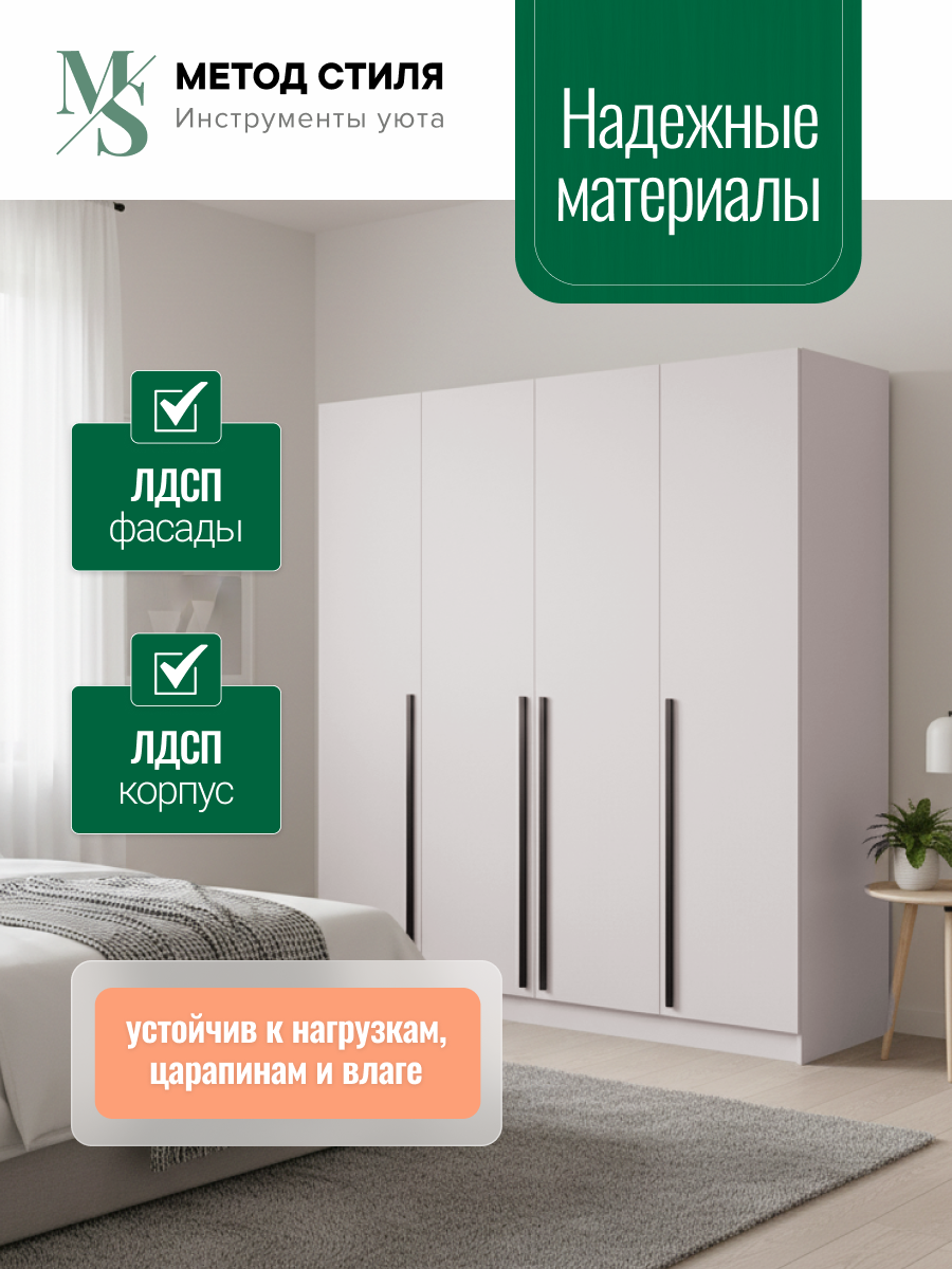 Шкаф для одежды распашной 4-х створчатый 2.0 Бастион - это стильное и практичное решение для вашей прихожей, гостиной или спальни.