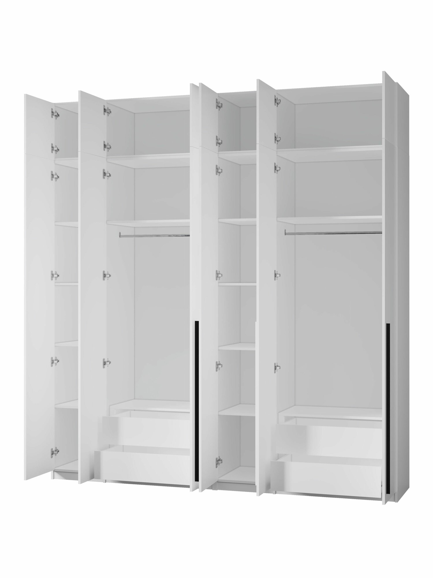 Размеры модели идеально подходят для размещения в больших комнатах, а объемное внутреннее пространство с множеством секций предлагает достаточно места для хранения как верхней одежды, так и деликатных вещей. Распашной механизм дверей позволяет легко открывать и закрывать шкаф, обеспечивая удобный доступ ко всем вашим гардеробным принадлежностям.