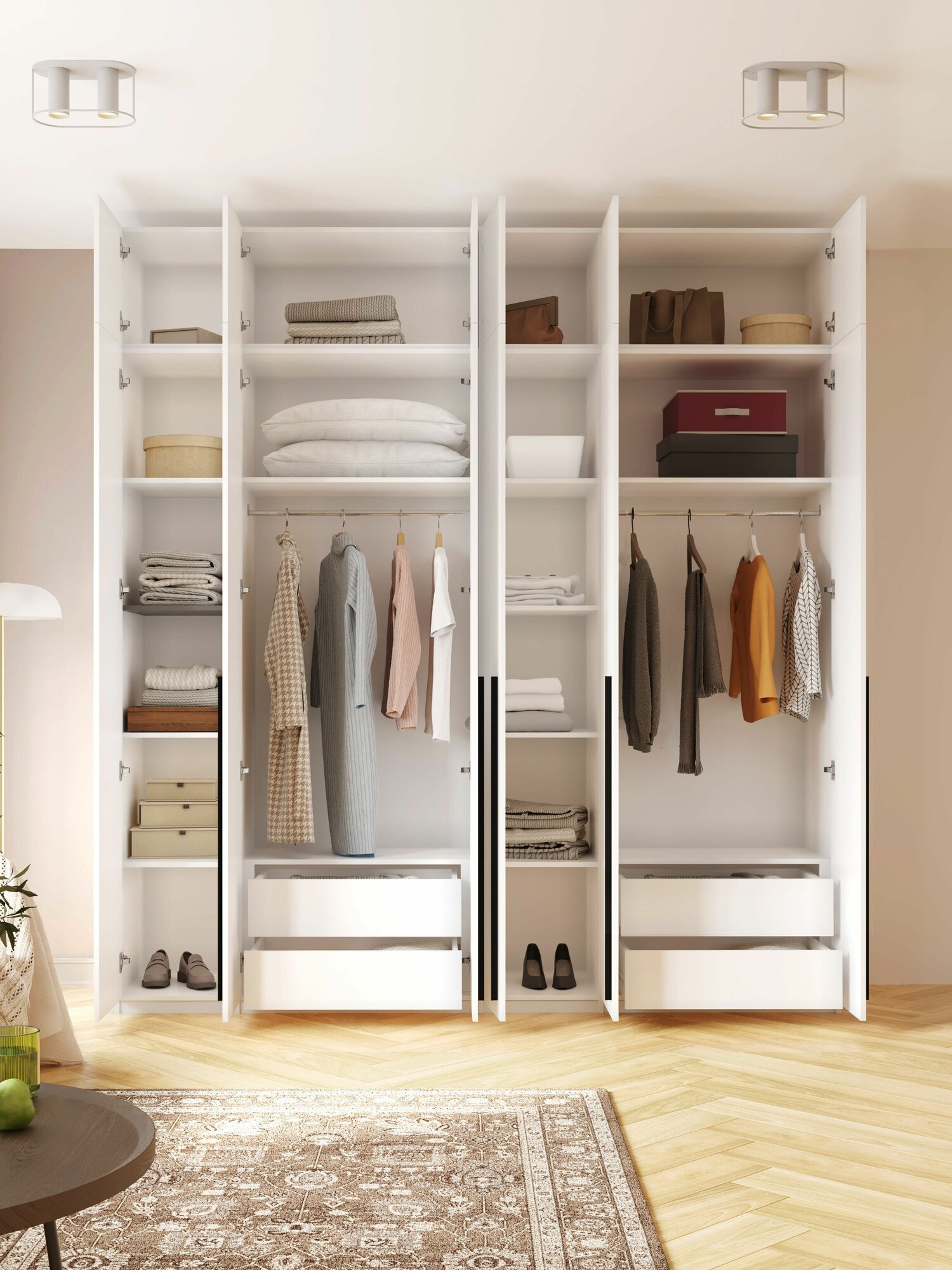 Белый шкаф привнесет в ваш дом атмосферу свежести и света, делая пространство визуально более просторным. Его современный дизайн и продуманные элементы позволят вам эффективно использовать место. Антресоль предоставляет дополнительное пространство для хранения предметов, которые вы не используете чаще всего, освобождая тем самым полки на уровне глаз.