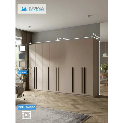 Шкаф для одежды распашной 8-ми дверный, Кашемир, 2200х3200х520 мм: сравнение цен, характеристики, фото, актуальное наличие и цены.
